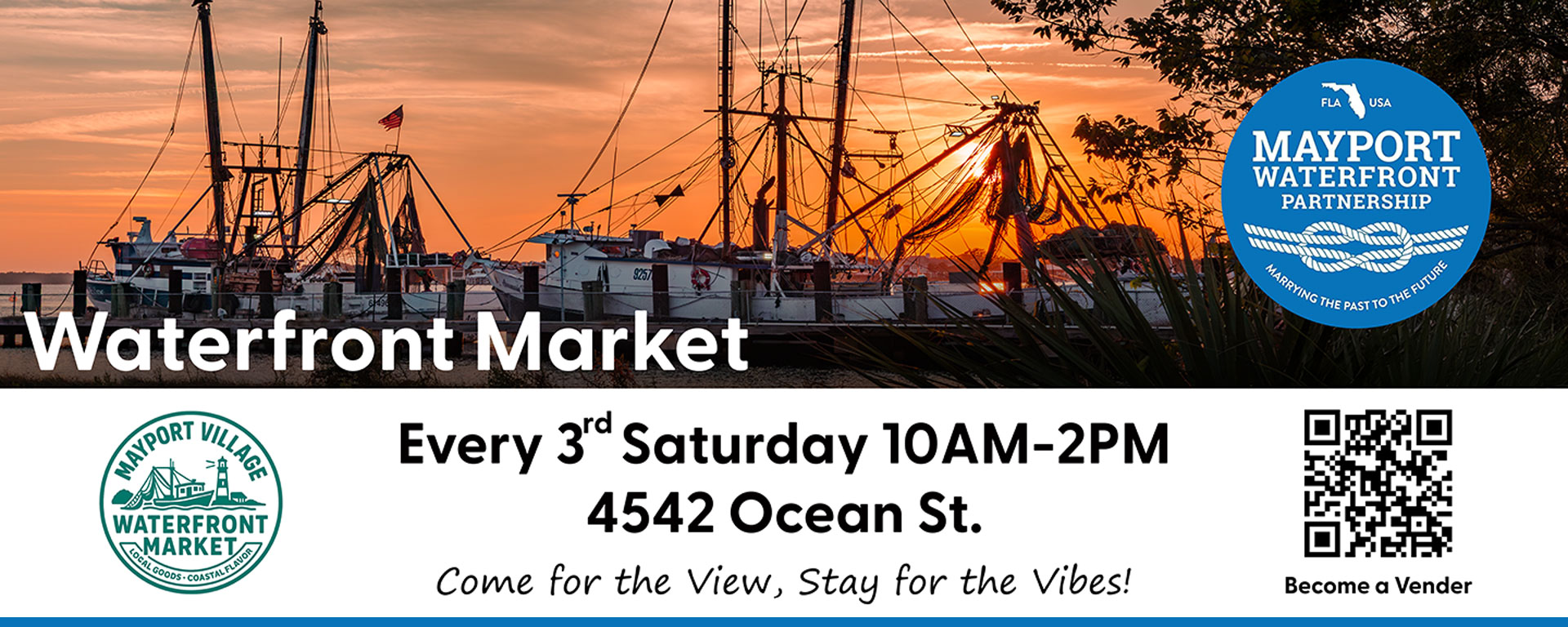 The Mayport Waterfront Market is a new community-driven market launching fall 2025 in historic Mayport Village. Nestled along the waterfront on Ocean Street, the market will highlight the area’s rich fishing heritage while creating a welcoming space for locals and visitors to shop, connect, and celebrate coastal living.